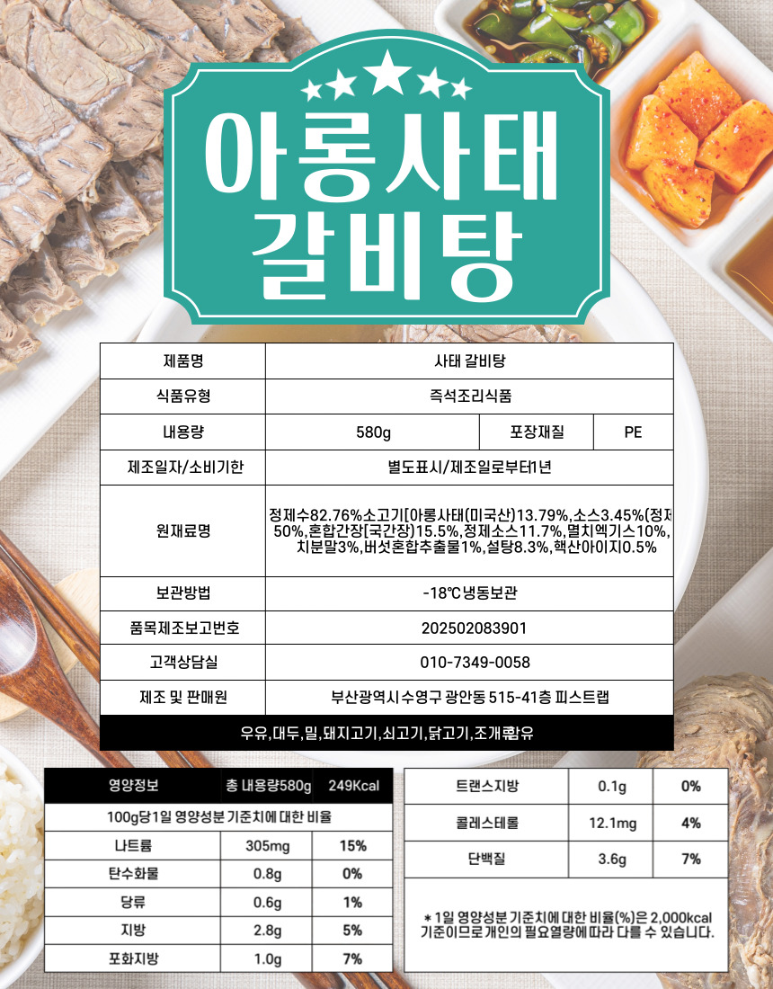 부드러운 아롱사태 갈비탕1EA : 6,900원