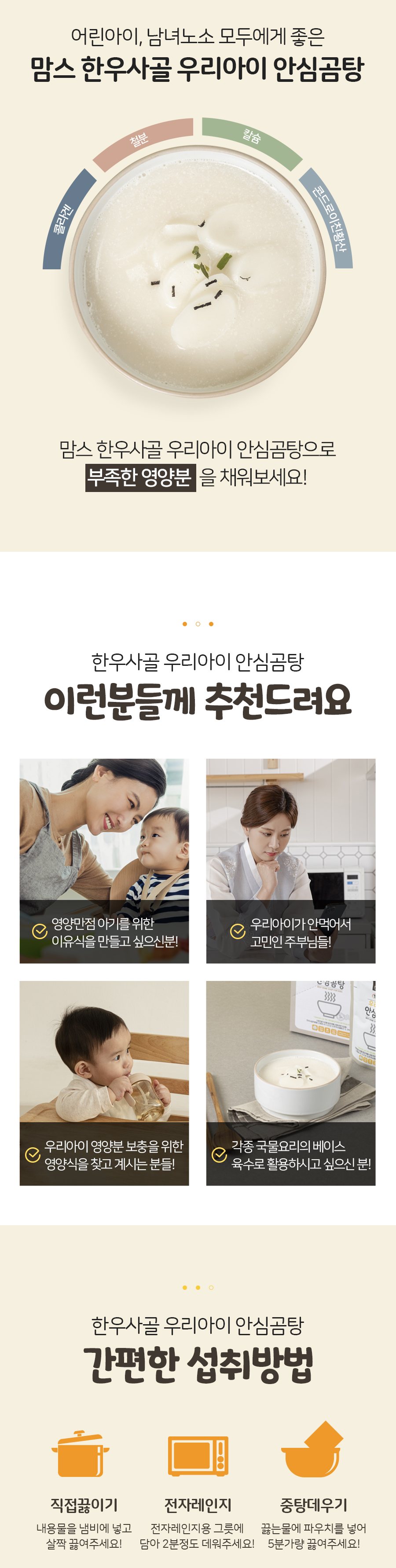 [안심 곰탕➕1 ]소금조차 넣지 않은 맘스 안심 곰탕 (딱 한끼 소포장/무첨가) + 야채품은쌀